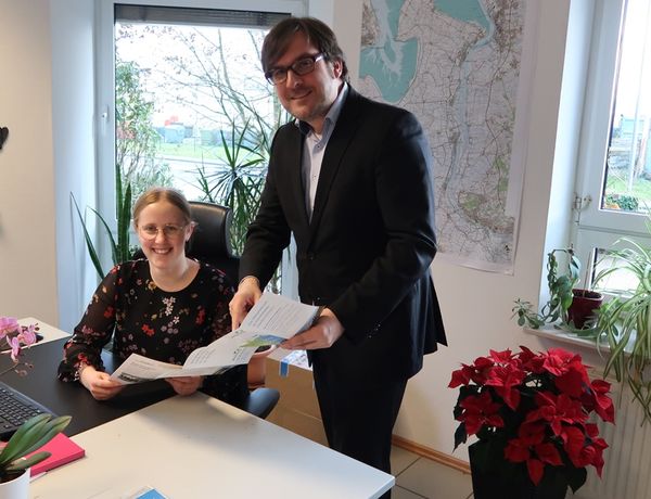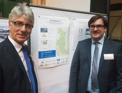 Hannover/Wesermarsch. Anfang November fanden die 12. Niedersächsischen Energietage in Hannover statt. Michael Kurz (links), Bürgermeister der Stadt Brake und Nils Siemen, Geschäftführer der Wirtschaftsförderung Wesemarsch, konnten u.a. das Projekt "H2BrakeC02" vorstellen, das im Rahmen des Bundesförderprogramm HylandExpert eingereicht wurde.