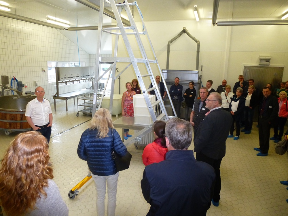 Gastgeber war im Juni die Hof Butendiek GmbH & Co.KG Seefeld. Der biologisch zertifizierte Milchvielbetrieb ist seit 1984 dem Biolandverband angeschlossen. Mit seinen 40 Mitarbeiterinnen und Mitarbeitern werden 240 Hektar bewirtschaftet. Der Familienbetrieb mit 180 Kühen steht für Feinkost im Käsebereich. Insbesondere Frischkäsevariationen und Schnittkäse zeichnen diesen Betrieb aus. Im Rahmen eines EU-Projektes wurde der Hof kürzlich als Grünlandbetrieb zum innovativsten Hof in Deutschland gekürt. Er gehört damit zu den acht besten Grünland-Betrieben im europäischen Projekt Inno4Grass, in dem neben Deutschland sieben weitere Länder beteiligt sind. Die Auszeichnung richtet sich auf die Spezialtechnik für die Heutrocknung. Zum Trocknen wurde eine eigene Trocknungsanlage entwickelt und installiert. Statt üblicherweise Silage, werden die Kühe bei den Butendiekern mit Heu gefüttert. Ergebnis: Heumilch-Käse, den die Kunden als „Kuno“, „Gustav“, „Scharfe Käthe“ oder auch „Sultans Freuden“ lieb gewonnen haben.