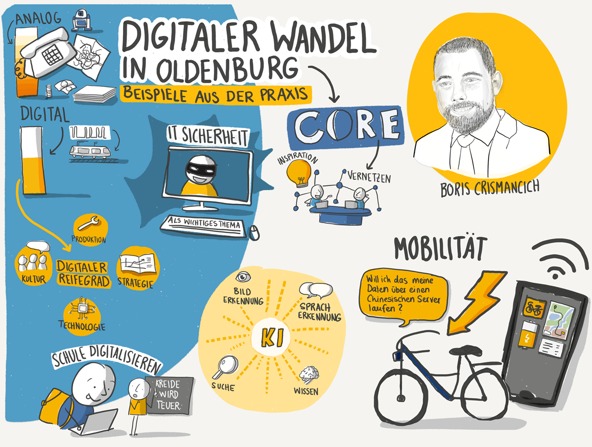 Spannende Impulse zum Einstieg gaben zwei Vorträge, die sich mit dem digitalen Wandel in Oldenburger Unternehmen und dem Themenfeld IT-Sicherheit befassten