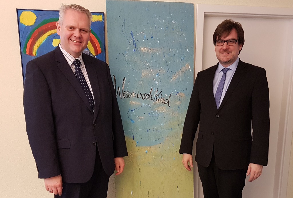Geschäftsführer Nils Siemen hat im Zuge seiner Antrittsbesuche im Landkreis Wesermarsch den niedersächsischen Minister für Wissenschaft und Kultur Björn Thümler in seinem Wahlkreisbüro in Berne besucht. Das Gespräch drehte sich um Herausforderungen und Chancen für den Wirtschafts- und Lebensstandort Wesermarsch. Herr Siemen gab einen Ausblick auf die zukünftigen Schwerpunkte der Wirtschaftsförderung Wesermarsch GmbH u.a. in den Bereichen Gewerbeflächenentwicklung und Standortmarketing. Herr Thümler berichtete über Aktivitäten des Landes Niedersachsen, die die Zusammenarbeit von Hochschulen und Wirtschaft verbessern und damit Wissenstransfer und die Zahl der Existenzgründungen auch im Landkreis Wesermarsch erhöhen sollen. Beide sehen zudem im Bau der A20 großes Potenzial um die positive wirtschaftliche Entwicklung in der Wesermarsch weiter zu steigern. Herr Thümler hat die Wirtschaftsförderung 20 Jahre zunächst als stellvertretender später als Aufsichtsratsvorsitzender begleitet. Aufgrund seiner Wahl zum Minister für Wissenschaft und Kultur musste Thümler sein Amt bei der Wirtschaftsförderung aufgeben. Nachfolger ist seit September 2018 Hans-Dieter Beck.