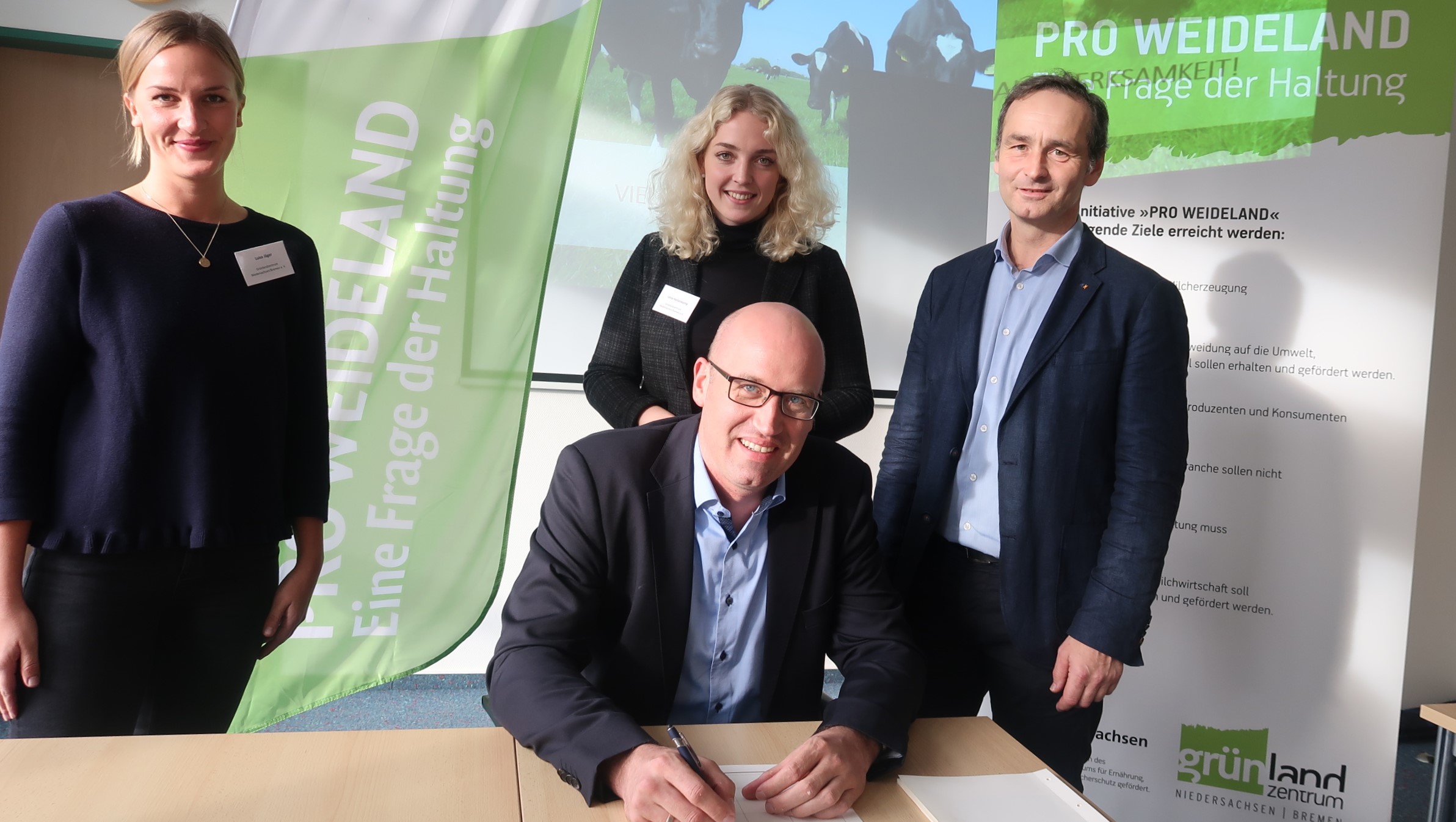 Ovelgönne/Norddeutschland. Mit der Westfleisch SCE aus dem westfälischen Münster steigt der erste Fleischvermarkter bei PRO WEIDELAND ein. Seit November vergangenen Jahres erhalten Verbraucher neben Milch, Butter und Käse nun auch Produkte aus Rindfleisch mit dem Label PRO WEIDELAND, das als Gütesiegel für Weidehaltung Maßstäbe setzt. Das grüne Rundsiegel PRO WEIDELAND ist Eigentum des Grünlandzentrums Niedersachsen/Bremen e.V. mit Sitz in Ovelgönne.